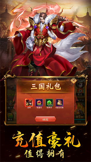 1、历史名将,臣服脚下:历史名将,依次登场,需要你用武力征服他们。这不是常见的卡牌游戏,武将需要靠“打”。