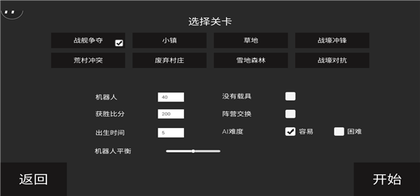 新版本有7个据点,两队有两个初始据点,各有两辆坦克,两架战斗机,一架轰炸机和一架直升机以及以及不同大小汽车若干。