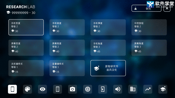1、手机设计:游戏的手机设计功能参数非常多,有长宽和手机厚度、屏幕大小、屏占比、Home键风格及位置、手机外观、按键位置、前置相机、后置相机、颜色、屏幕类型及分辨率、CPU、内存、存储……随着科技发展还能研发更多东西