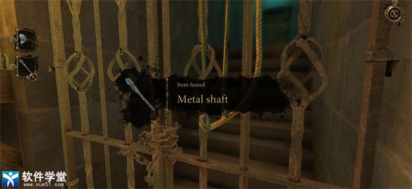 5、行至下一个铁门,使用之前的工具放进洞口转动就能打开门并获得道具