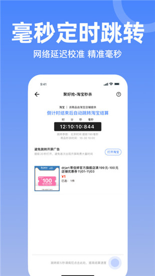 秒杀神器app是一款帮助购物抢单的一款实用小工具,抢单速度十分迅速。随着互联网时代快速发展,涌现了越来越多的电商平台,网络购物变成我们必不可少的日常活动。而各大电商平台都会推出各种优惠活动,例如限时秒杀的商品,或是限时领取的优惠券。因为发放的数量有限因此我们必须蹲点抢购,但很多时候我们辛辛苦苦等了几个小时却抢不到,仿佛几秒钟就被一抢而空。而这款软件则能很好解决这个问题,自动并且快速的帮助我们抢到想要的商品或是优惠券。软件能够设置好抢单时间,提前提醒我们做好准备,还能设置自动跳转功能,保证抢单速度大大提升。同时软件还能帮你找到那些限时秒杀的商品,让你不要在各大平台来回翻找。经常在网上购物的朋友们不要错过这款软件哦,能为你的网购省下很多钱,现在赶快下载这款实用的秒杀神器app吧。
