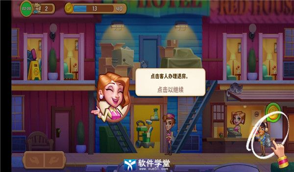 1、进入游戏,轻按客人,打个招呼,开始你的酒店管理之路