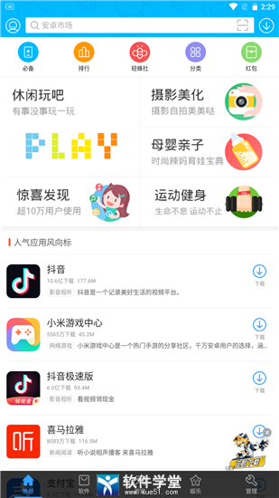 安卓市场app是一款为安卓手机用户提供应用程序下载的软件,是一款非常流行的应用商店,可以让用户轻松地浏览和下载各种类型的应用程序。软件提供了海量的应用程序下载,涵盖了各种领域和分类,包括游戏、社交、音乐、视频、工具等等,这为用户提供了非常丰富的选择,可以根据自己的需要选择适合自己的应用程序,该应用商店不断更新和添加新的应用程序,以满足不同用户的需求。软件具有非常方便的搜索和浏览功能。用户可以通过输入应用程序的关键字或直接浏览应用程序分类,快速找到所需的应用程序。该应用商店的界面也非常简洁明了,用户可以轻松地找到所需的功能。软件还提供了应用程序的推荐和评分功能。用户可以看到其他用户对应用程序的评价和评论,以便更好地了解该应用程序的特点和优缺点。同时,应用程序推荐也能让用户发现其他可能感兴趣的应用程序。总的来说,安卓市场app是一款非常优秀的应用商店,为用户提供了丰富的应用程序下载和方便的搜索浏览功能。如果你需要下载安卓应用程序,那么安卓市场APP是一个值得尝试的应用商店。