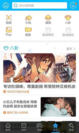 软件还带有娱乐资讯,可以看小说、视频和漫画,一款软件包含多种功能非常实用