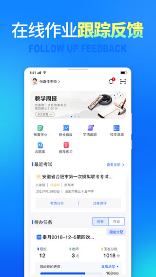 1、七天网络app支持校长、年级组长、班主任和学生访问阅卷系统。校长可以查看所有年级的考试数据和分析报表,年级组长可以监控和督促教师评阅,查看本年级各班考试数据和分析报表,班主任可以查看本班考试数据和分析报表,学生可以查看本人考试成绩、本人答卷、优秀答卷,也可以查看本人本次考试的学科成绩均衡性雷达图,每科每题的成绩均衡性雷达图。