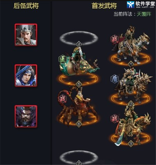【阵法】战力取决布阵阵法、阵法等级组成,玩家等级越高就能匹配越好的阵法和阵型!这里小编要强调的是,【武将】职业有医、战、盾几种职业组成,切记医后、战中、盾前三个规律。