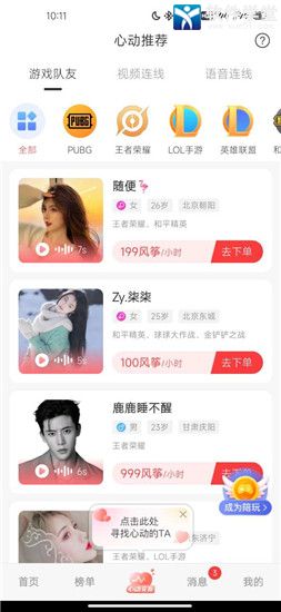 3、心动交友、该功能为后面更新所添加的,可以通过各种方式交友、比如游戏交友、游戏陪玩、视频连线等