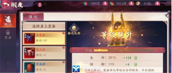 提示:玩家可从妖王系统获得各个星级的装备,在锻造界面提升装备的强化等级