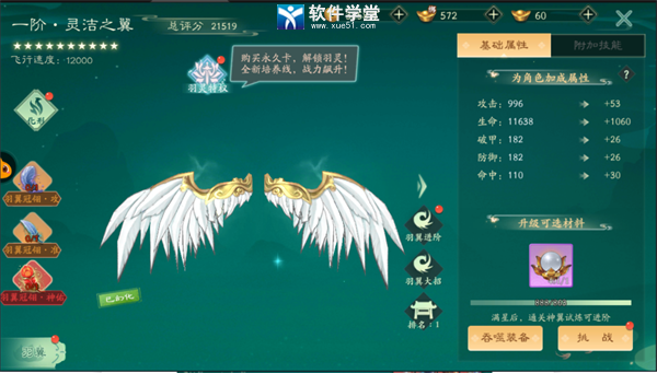 4.羽翼,也就是玩家所佩戴的炫酷翅膀,收集各种不同的羽翼可以增加战力。可以使用灵羽精华给羽翼提升星级,在满星后通关神翼灵境可进阶,同时给羽翼使用过圣血灵羽、圣隐灵羽、神佑灵羽都能为羽翼额外增加战力。有羽翼化形符时可以给羽翼幻化升星。这里加的战力都是几千起步