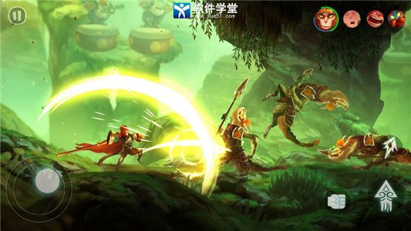 6、目前版本中,每个角色可以拥有两个技能:石像激活技能加上普攻、跳跃、突进正好占到了手柄的四个按钮,在移动端也不会显得按键繁多杂乱