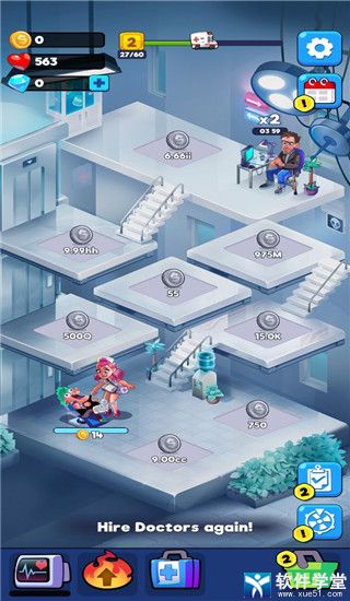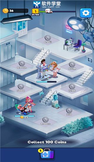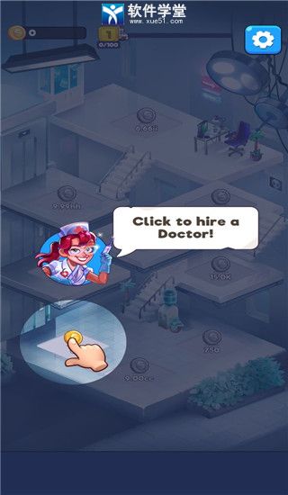 5、解锁更多的就诊厅获取更多的金币收益,游戏结束就可以自由发展你的疯狂医院啦