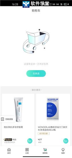 3、软件购物车页面,你所添加到购物车的商品都会保存在这个页面,还可以一键支付
