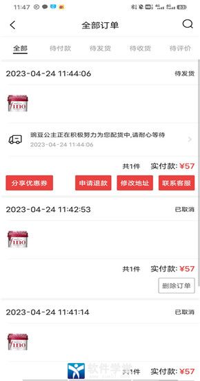 1、点击我的,选择订单,里面为用户提供了全部订单,选择你想要退货的订单,点击申请退款
