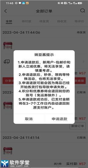 申请退款后,新用户-包邮价和新人立减优惠,将无法享受,请慎重考虑