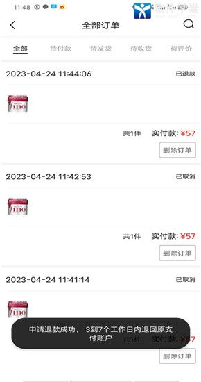 4、申请退款成功,3~7个工作日内自动退回到原支付账户。