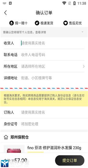 5、最后输入自己详细详细,如收货人、地址、练习电话,最后在豌豆公主app提交订单并进行支付即可
