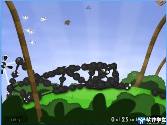 方法二:粘粘世界手机版游戏在可拆卸的粘粘球上搭建不可拆卸的粘粘球(在可拆卸的粘粘球较少且已经被刷完时用,速度最慢)