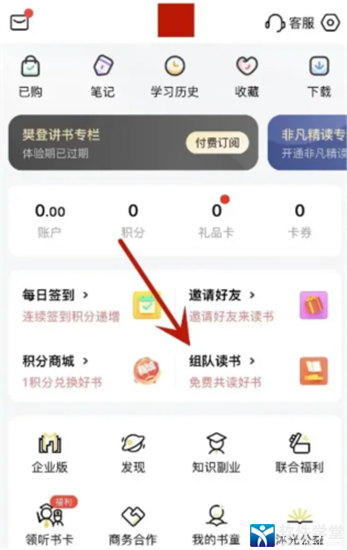 1、首先在帆书我的界面,点击组队读书选项。