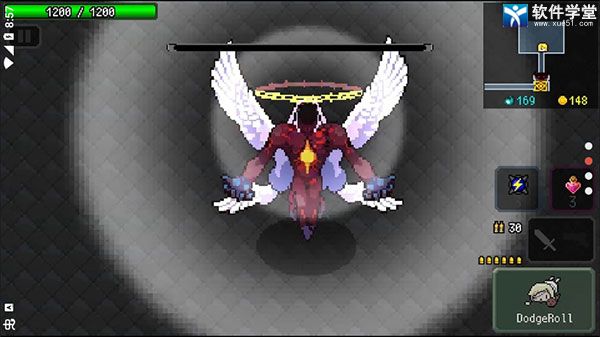 2、一层的地图中都有一名boss,打败该boss后便能够进入下一层继续冒险。在战斗过程中击杀怪物或者开启宝箱都有几率获得金币,这些获得的金币可以在商店处购买道具和武器,商店的位置是在地图中随机生成的。并且在击杀敌人时,不仅仅有几率掉落金币,还会有一定几率掉落“蓝魂”,“蓝魂”作为道具可在地图中的NPC处解锁道具槽以及人物动作等一系列的额外附加功能。因为roguelike元素的存在,在流程中玩家在战斗时被怪物击杀,便会回到最开始的初始房间“狄加玛的房间”里并且同时失去身上所有武器装备,至于获得的道具以及已解锁的能力在死后可以保留。