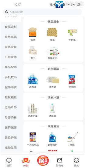 2、分类页,可以在这个页面按照分类查找你所需要的商品,品类划分广泛,包含食品饮料、美妆护肤等十余个分类