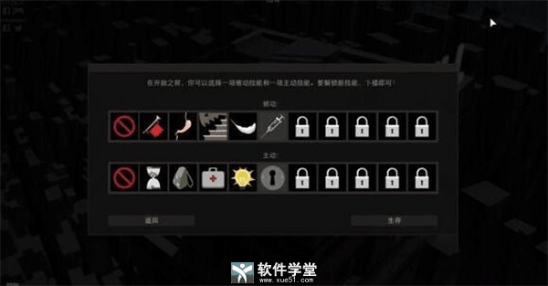1、开局的时候能够选择不同的主动、被动技能,一般都同时具有双刃剑的效果,谨慎选择哦