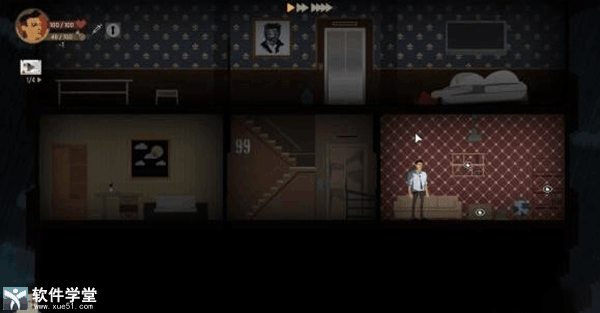 3、每层楼都有楼梯和两个房间三块区域,我们需要一一探索,找到资源和线索