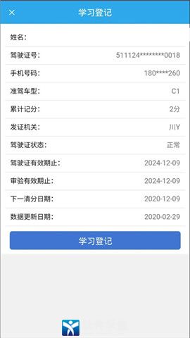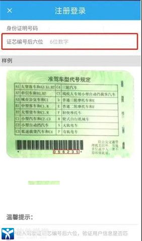 2、进入“学法减分”,输入驾驶证证芯编号后六位,然后输入验证码。