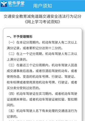 3、验证完成注册以后,进入“学法减分”,并阅读“用户须知”。