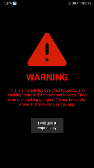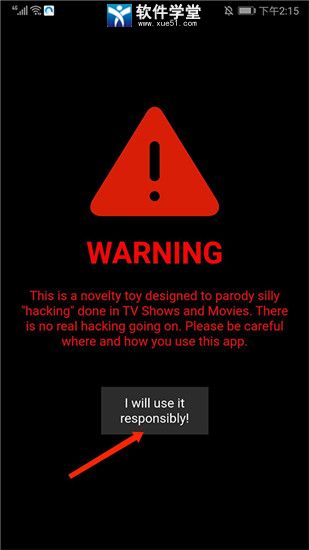 1、打开该软件,进入应用主界面就有一种黑客的感觉了,点击下方【I will use responsiblly】提示,