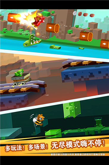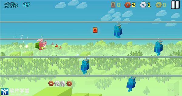 7、丛林飞跃在丛林飞跃关卡中有四条轨道,小怪兽会挂在轨道上滑行,但是每个轨道上也都挂着机器人障碍,一旦撞到就会失败,因此需要在上下轨道之间来回移动,避免发生撞击。