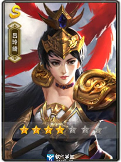 吕玲绮:温侯之女,继承其父的部分能力,输出能力很强,对男性武将的杀伤极强。辅助性猛将,对男性武将的杀伤力极大,七星技能造成群体眩晕效果,极大利于我方输出武将,趁虚而入至内部给敌人造成很大的伤害。