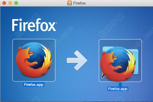 3)下载完成后该文件(Firefox.dmg)应该会自动运行并弹出含有 Firefox 应用的 Finder 窗口。拖动 Firefox 图标将其复制到应用文件夹。
