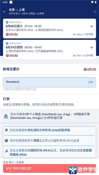 3、选择完出发航班时间之后还需要确定返程航班时间