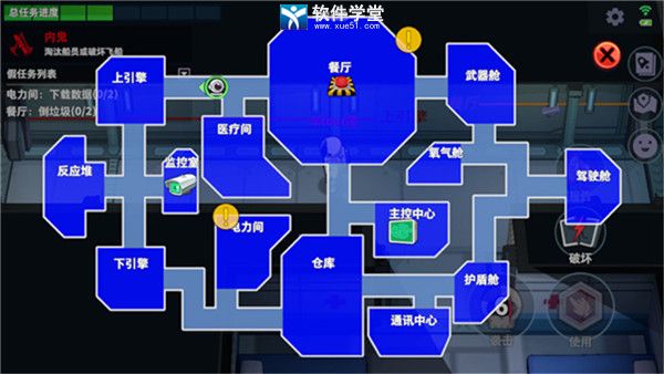 狼人杀推理游戏,游戏内的操作比较简单,主要是锻炼玩家的s思考和反应能力,在这里玩家扮演的是一个太空船上的船员,身份随机抽取,如果你是好人就要抓紧完成任务或者抓出另外阵营的人来赢得游戏胜利,坏人的目的就是想方设法的破坏飞船设施,找机会动手干掉好人并栽赃嫁祸给别人,但是还要注意另一个身份的人,他们的身份中立,独特的任务和获胜条件,这种多身份阵营的游戏,经常能产生头脑风暴。