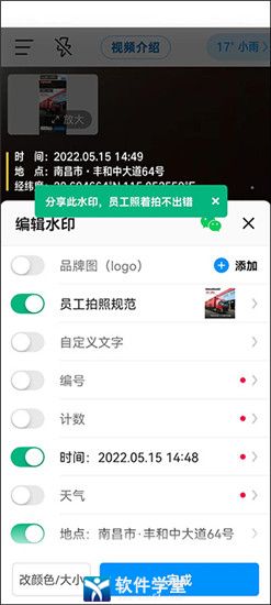 今日水印相机官方版免费软件是一款记录工作和生活的水印相机拍照软件应用,它是由北京小嘿科技有限责任公司开发出来的,该软件主要为用户提供工作拍照留痕、团队考勤打卡、工程施工管理、外勤拍照、取证拍照等场景的水印模板,并支持多种水印类型和模板,例如时间地点水印、工程水印、天气水印、工作打卡水印等。用户可以选择一款水印模板,然后一键拍照,即可生成水印,非常方便。