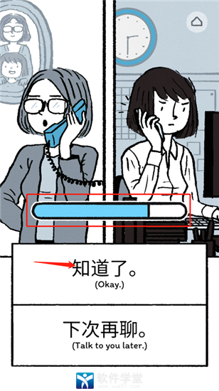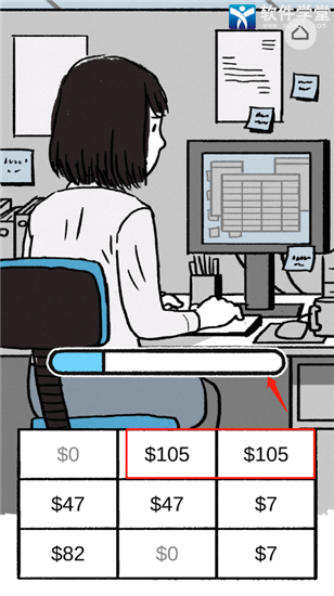 6、到公司坐下来了,开始上班,点击下方相同的数字,上方蓝条满了今天的工作就结束了。