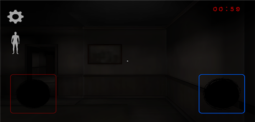 3、进入寻找伪人手游之后,右上角的是时间,左下方的是移动遥杆,右下方则是控制视角