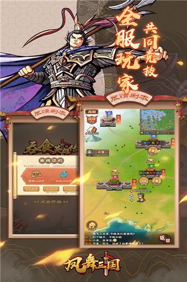 凤舞三国果盘版是一款以经典三国人物为题材的放置策略回合制手机游戏,游戏玩法与战争与文明手游如出一辙。在游戏中,提供了许多经典的历史名将,他们都有其独特的技能特点属性,你可以通过招募系统招募他们,给他们穿戴上合适的装备,培养升级提升战斗力。