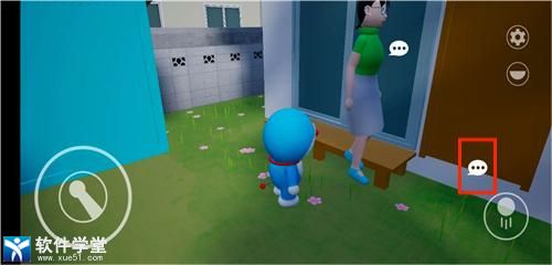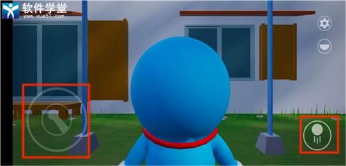 2、开始游戏之后,我们需要通过左下角的移动遥杆控制哆啦A梦的行动,右下角的按键则是跳跃键