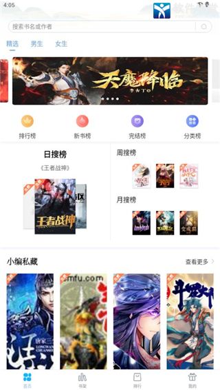 1、首先进入软件的主页面,这里为大家带来了大量的小说,点击上方的搜索栏