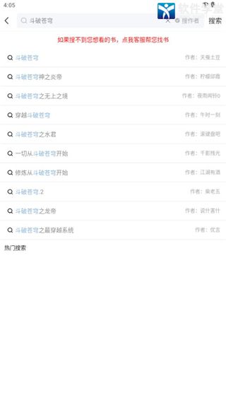 2、在搜索页面中,在输入框中输入小说的名字就可以进行搜索,如果是搜索作者,需要勾选右侧的搜作者,软件会根据你输入的内容出现下拉,点击想要看的小说