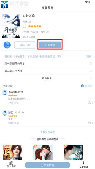 3、在笔友阁纯净版小说阅读器的小说详情页面中,点击立即阅读开始阅读,也可以点击下方的更多目录选择小说的章节