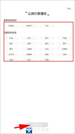 1、首先下载好软件后会要求用户进行标签设置,你可以自由选择也可以直接跳过