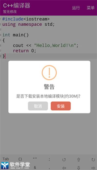 用户安装此软件即可直接在手机编写与编译运行C++代码程序,无需再安装其它环境。