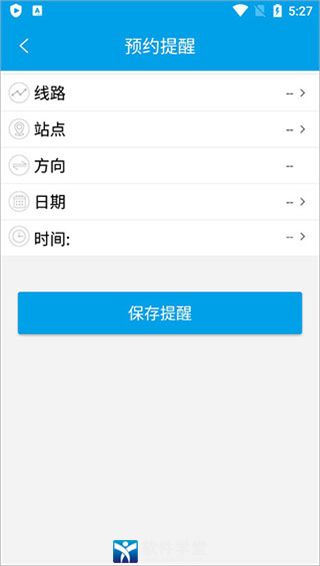 4、在通卡出行app最新版提醒页面中,你可以在这里设置线路,站点,方向,日期,时间,一旦出现符合的情况就会提醒用户