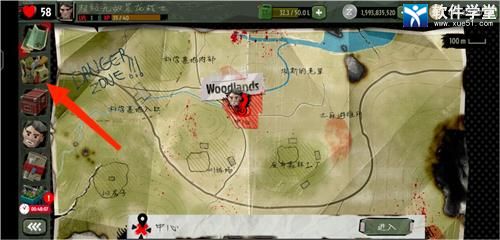 2、打开背包之后我们会直接进行地图页面,我们可以在这里前往不同的地点,点击左侧的背包