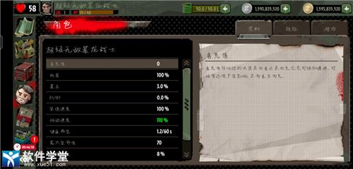 4、在角色页面中,我们可以在这里看到自己的各方面属性,技能和潜力,一般情况下不必在意这个,但是受伤之后就需要注意了