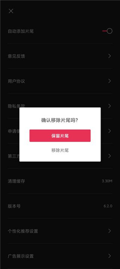 3、打开设置界面,然后点击“自动添加片尾”右侧的按钮关闭自动添加片尾功能。