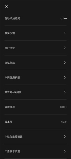 4、关闭自动添加片尾功能后,点击“×”退出设置。