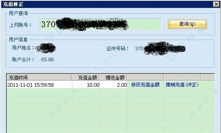 a.修改充值金额:可以只把多冲的钱修正回来,比如冲5元,结果给冲了50元,这样修正为冲5元,账目就可以对上了,多给用户冲的45元也减掉了(如果有赠送,同时也会自动减掉)。